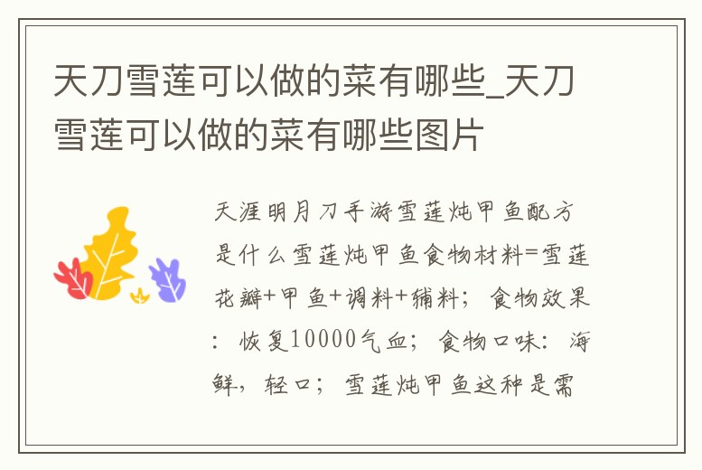 天刀雪蓮可以做的菜有哪些_天刀雪蓮可以做的菜有哪些圖片