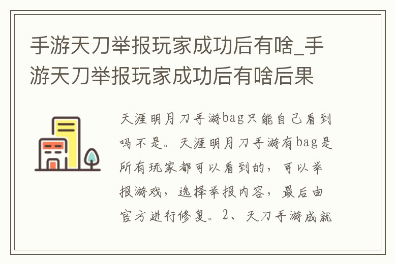 手游天刀舉報玩家成功后有啥_手游天刀舉報玩家成功后有啥后果