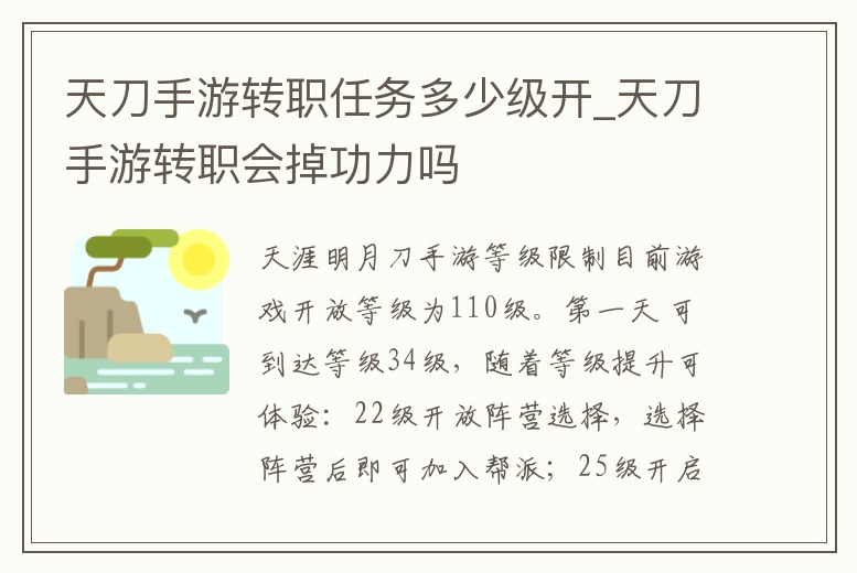天刀手游轉職任務多少級開_天刀手游轉職會掉功力嗎