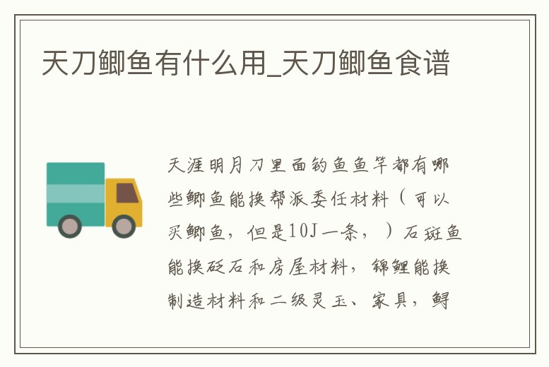 2、天涯明月刀釣魚比賽掉的魚有什么用