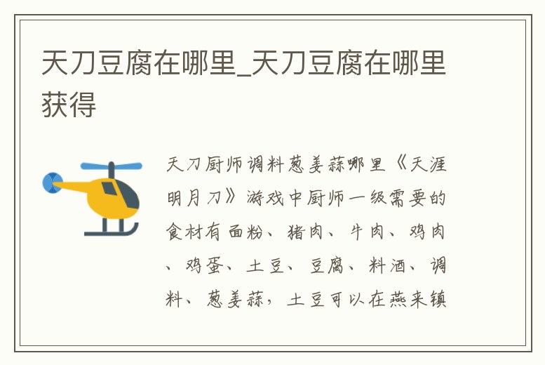 天刀豆腐在哪里_天刀豆腐在哪里獲得