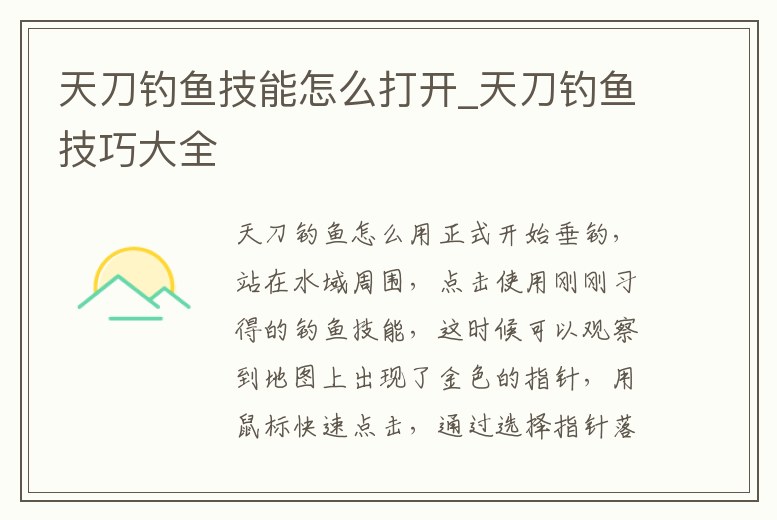 天刀釣魚技能怎么打開_天刀釣魚技巧大全