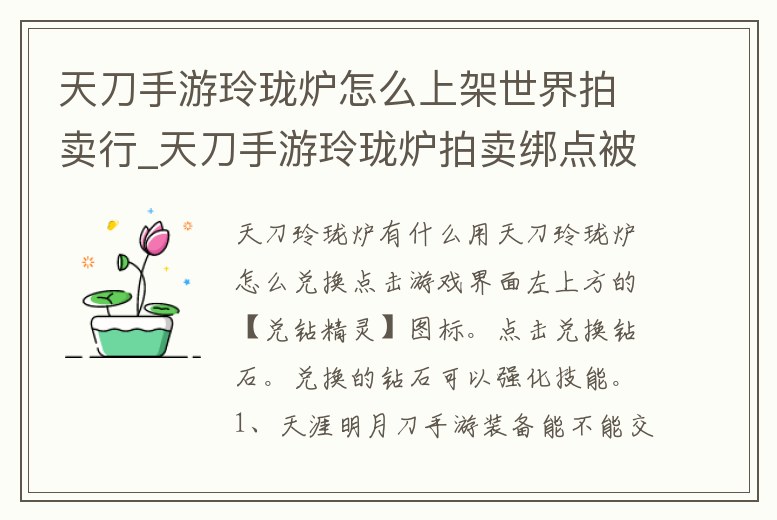 天刀手游玲瓏爐怎么上架世界拍賣行_天刀手游玲瓏爐拍賣綁點被吞