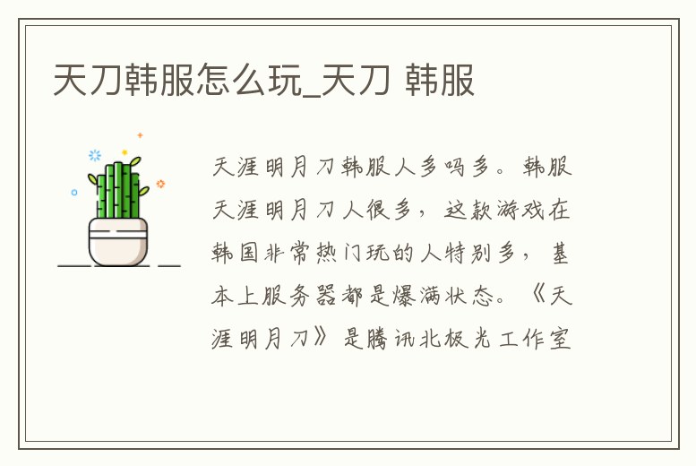 多。韓服天涯明月刀人很多,這款游戲在韓國非常熱門玩的人特別多,基本上服務器都是爆滿狀態。《天涯明月刀》是騰訊北極光工作室研發的一款武俠題材的3D大型多人在線角色扮演電腦客戶端國產游戲。