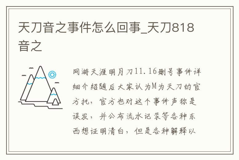 1、《天涯明月刀》1116刪號事件,究竟是怎么回事