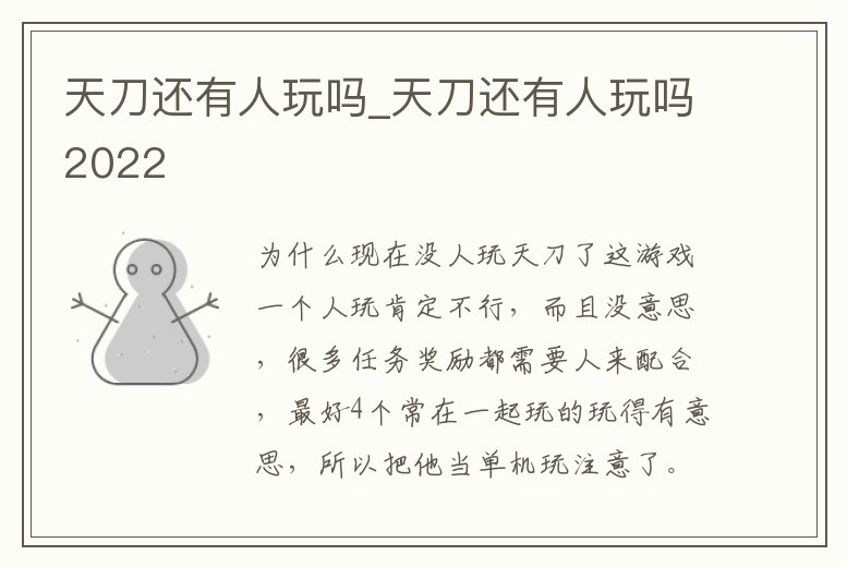 - 天刀還有人玩嗎_天刀還有人玩嗎2022