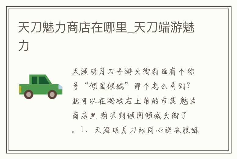 天刀魅力商店在哪里_天刀端游魅力