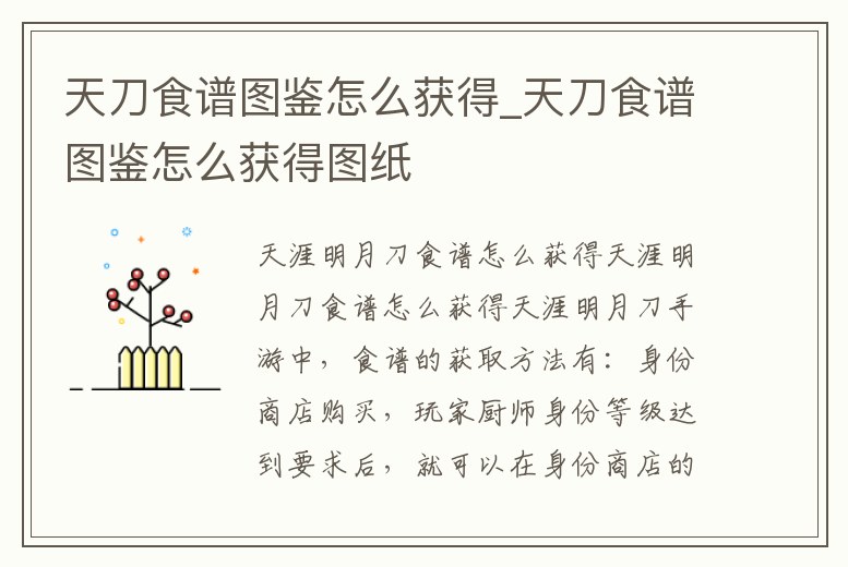 天刀食譜圖鑒怎么獲得_天刀食譜圖鑒怎么獲得圖紙