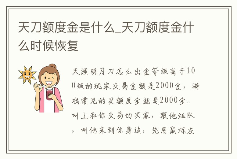 7、天涯明月刀ol交易額度上限怎么辦 額度上限怎么買賣金幣