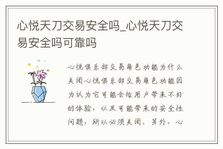心悅天刀交易安全嗎_心悅天刀交易安全嗎可靠嗎