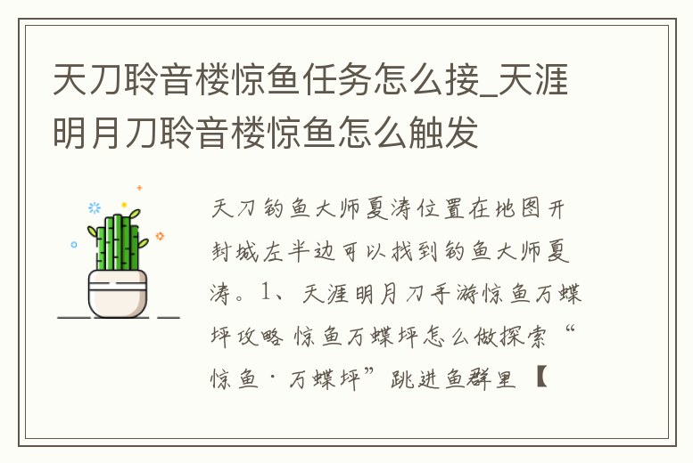 天刀聆音樓驚魚任務怎么接_天涯明月刀聆音樓驚魚怎么觸發