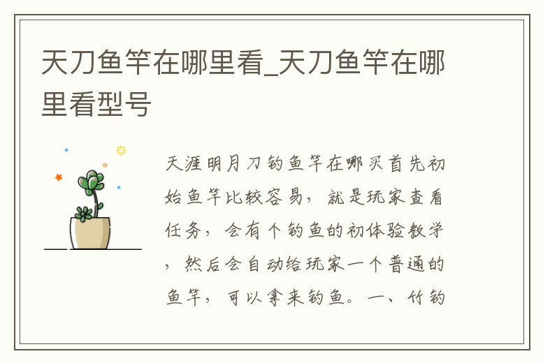 天刀魚竿在哪里看_天刀魚竿在哪里看型號