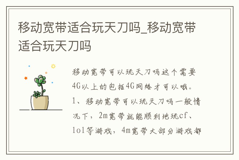 移動寬帶適合玩天刀嗎_移動寬帶適合玩天刀嗎