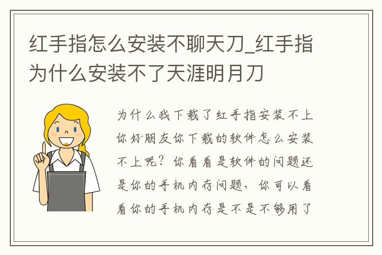 紅手指怎么安裝不聊天刀_紅手指為什么安裝不了天涯明月刀