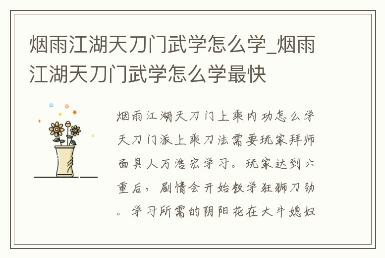 煙雨江湖天刀門武學怎么學_煙雨江湖天刀門武學怎么學最快