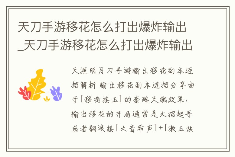 天刀手游移花怎么打出爆炸輸出_天刀手游移花怎么打出爆炸輸出技能