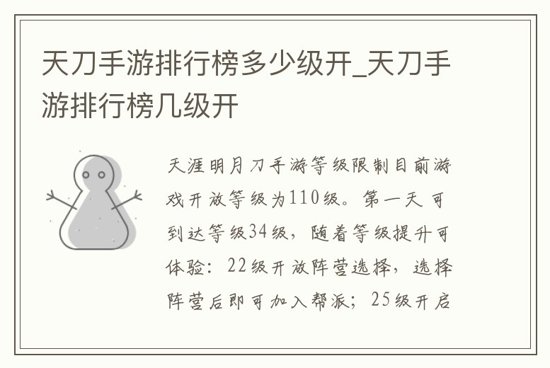 天刀手游排行榜多少級開_天刀手游排行榜幾級開