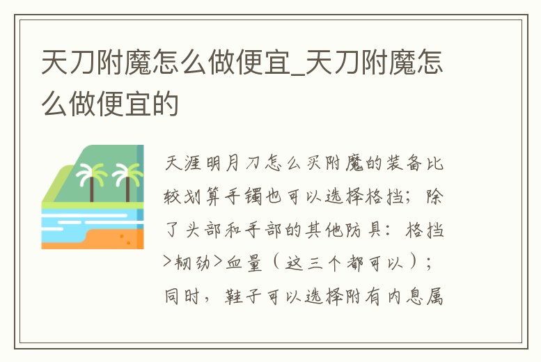 天刀附魔怎么做便宜_天刀附魔怎么做便宜的