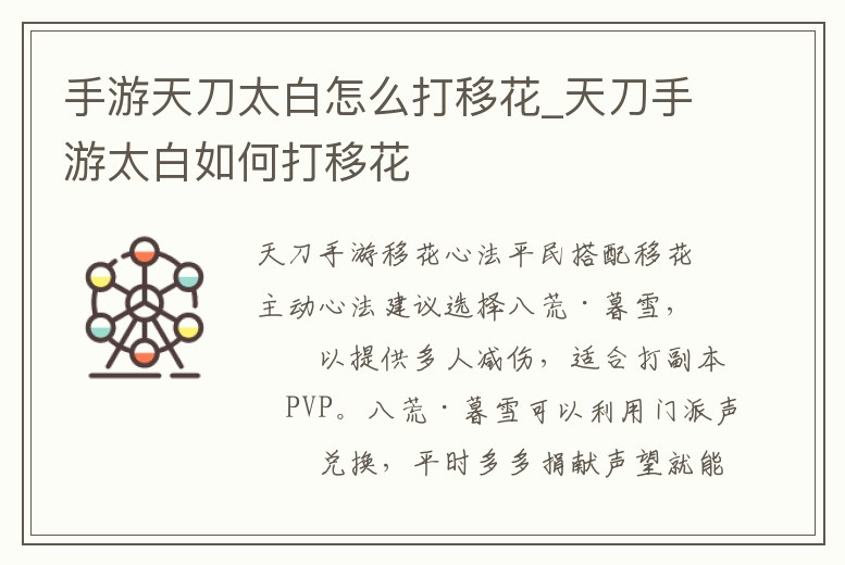 手游天刀太白怎么打移花_天刀手游太白如何打移花