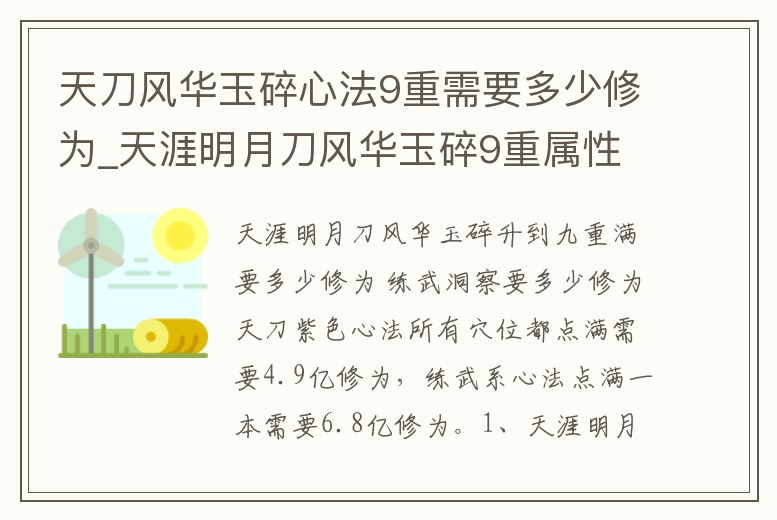 天刀風華玉碎心法9重需要多少修為_天涯明月刀風華玉碎9重屬性
