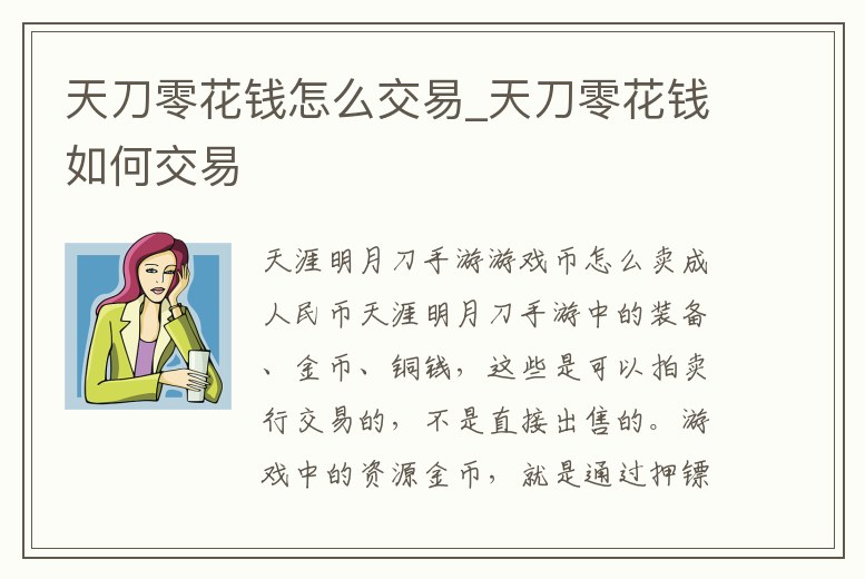 天刀零花錢怎么交易_天刀零花錢如何交易