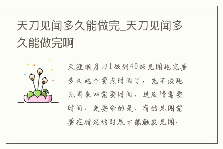 天刀見聞多久能做完_天刀見聞多久能做完啊