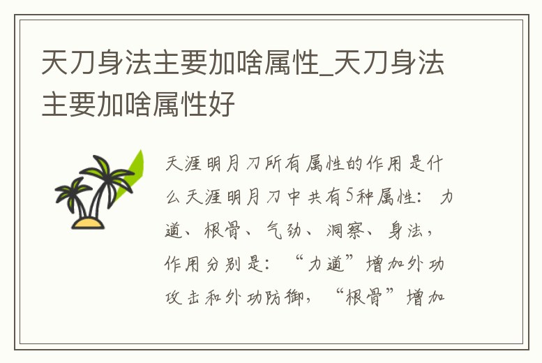天刀身法主要加啥屬性_天刀身法主要加啥屬性好