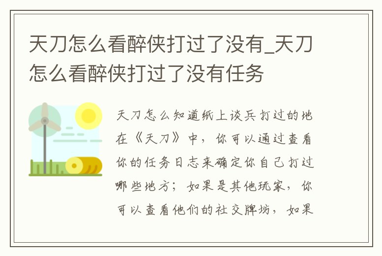 天刀怎么看醉俠打過了沒有_天刀怎么看醉俠打過了沒有任務
