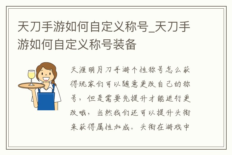 天刀手游如何自定義稱號_天刀手游如何自定義稱號裝備