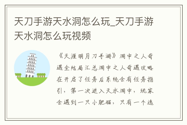 天刀手游天水洞怎么玩_天刀手游天水洞怎么玩視頻