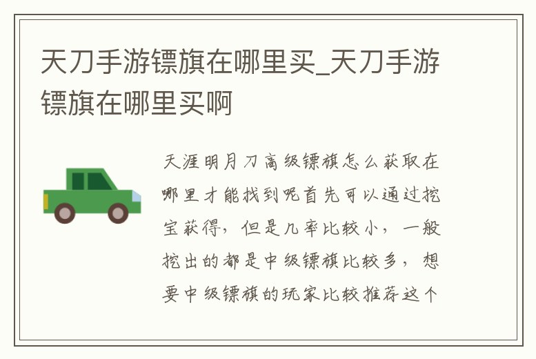 天刀手游鏢旗在哪里買_天刀手游鏢旗在哪里買啊