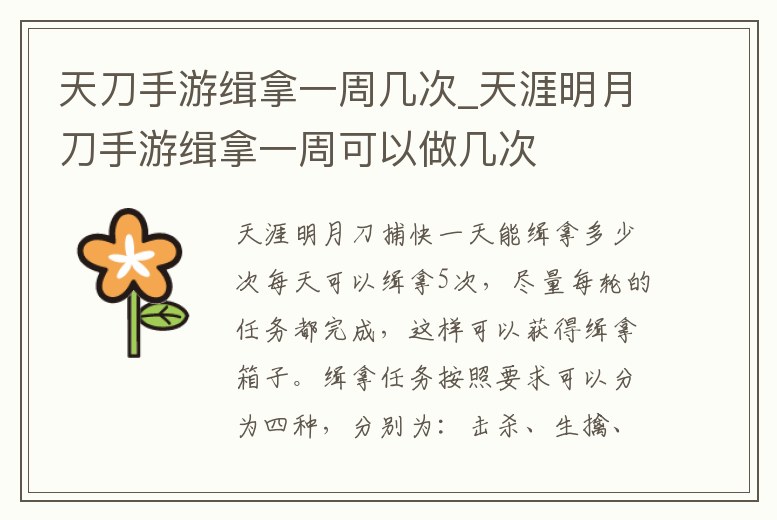 天刀手游緝拿一周幾次_天涯明月刀手游緝拿一周可以做幾次