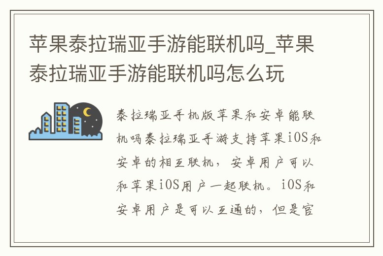 - 蘋果泰拉瑞亞手游能聯(lián)機嗎_蘋果泰拉瑞亞手游能聯(lián)機嗎怎么玩