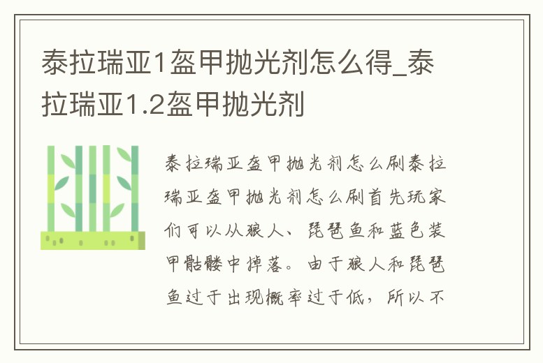 泰拉瑞亞1盔甲拋光劑怎么得_泰拉瑞亞1.2盔甲拋光劑