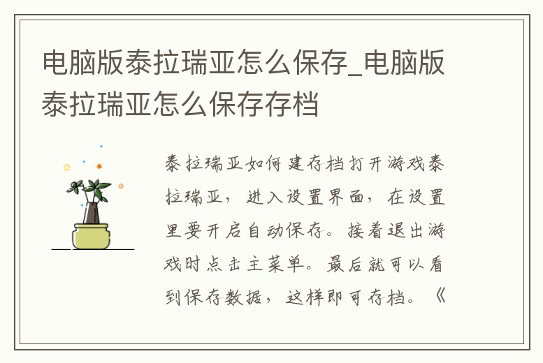電腦版泰拉瑞亞怎么保存_電腦版泰拉瑞亞怎么保存存檔