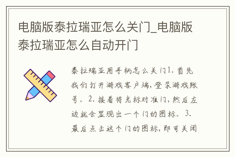電腦版泰拉瑞亞怎么關門_電腦版泰拉瑞亞怎么自動開門