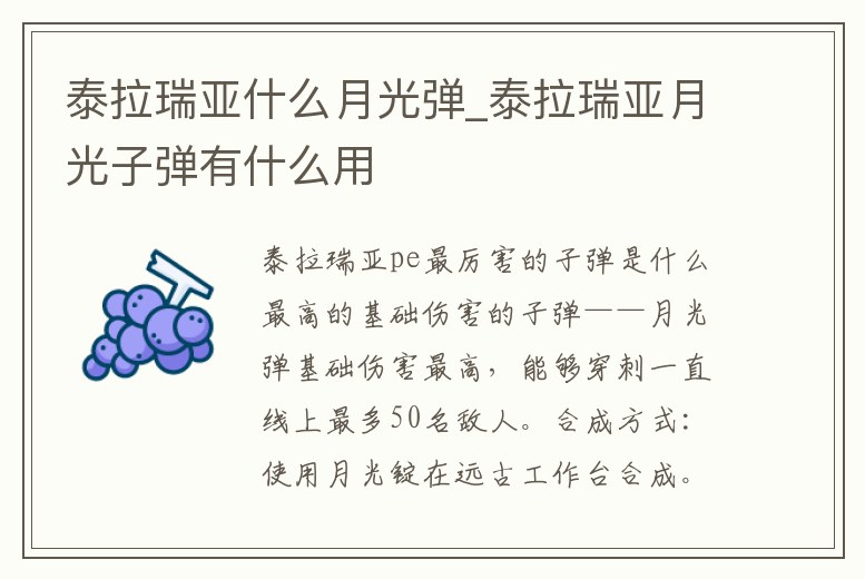 泰拉瑞亞什么月光彈_泰拉瑞亞月光子彈有什么用
