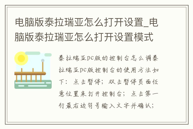 電腦版泰拉瑞亞怎么打開設置_電腦版泰拉瑞亞怎么打開設置模式
