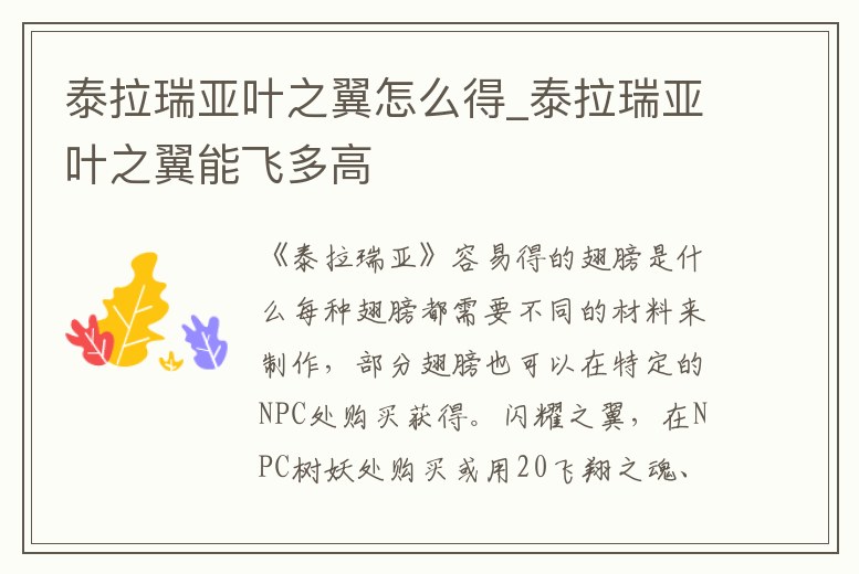 泰拉瑞亞葉之翼怎么得_泰拉瑞亞葉之翼能飛多高