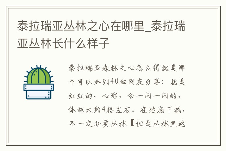 泰拉瑞亞叢林之心在哪里_泰拉瑞亞叢林長什么樣子