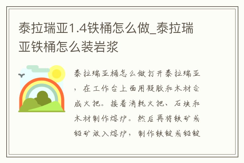 泰拉瑞亞1.4鐵桶怎么做_泰拉瑞亞鐵桶怎么裝巖漿