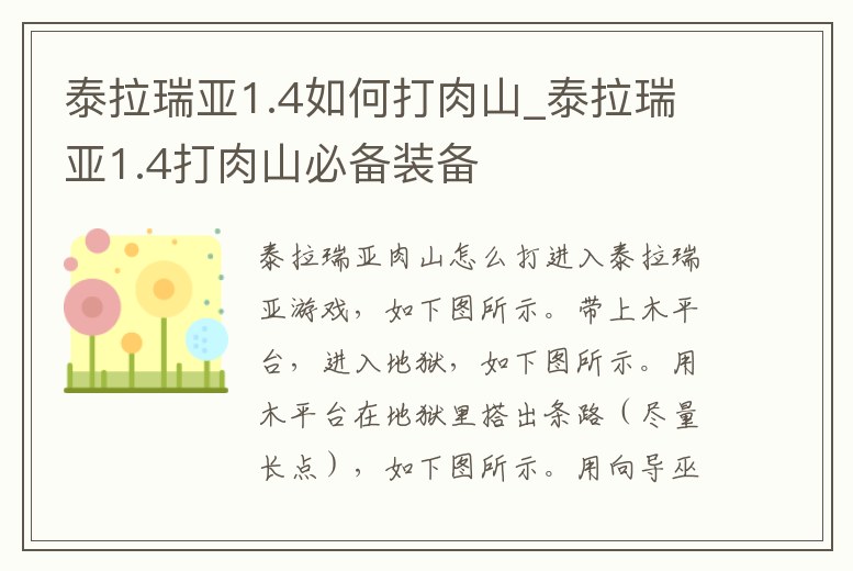 2、泰拉瑞亞新手怎么打肉山