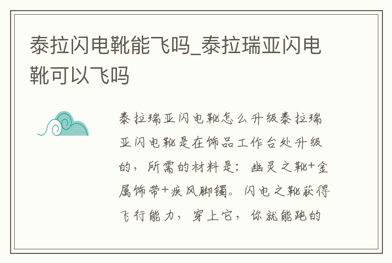 閃電之靴作用:獲得飛行能力,穿上它,你就能跑的超級(jí)快 它是在跑鞋和火箭鞋能力的基礎(chǔ)上,提升了一些移動(dòng)速度 它是制作“霜雪舞者”的材料之一 。