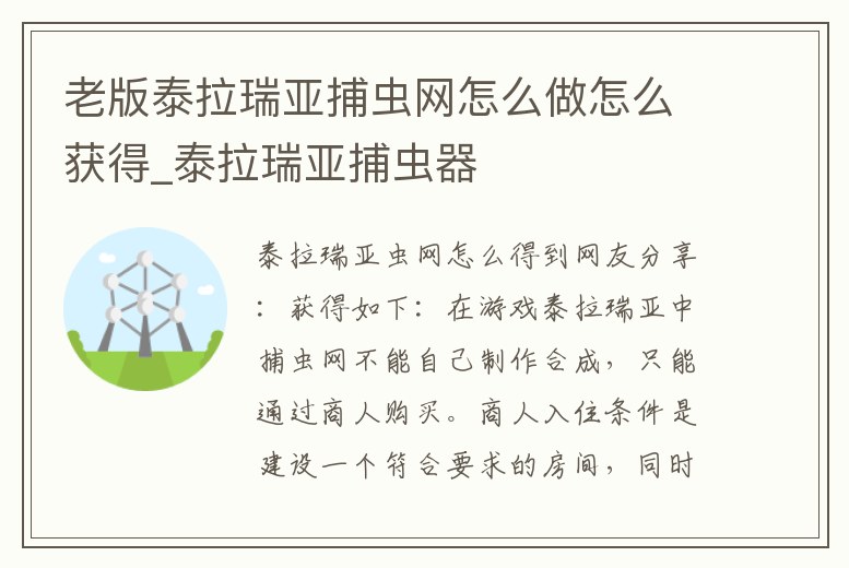 老版泰拉瑞亞捕蟲網(wǎng)怎么做怎么獲得_泰拉瑞亞捕蟲器
