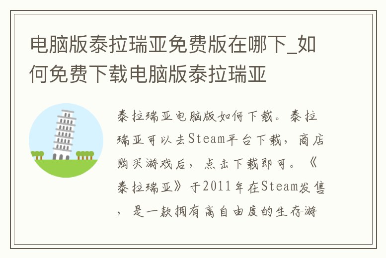 電腦版泰拉瑞亞免費版在哪下_如何免費下載電腦版泰拉瑞亞