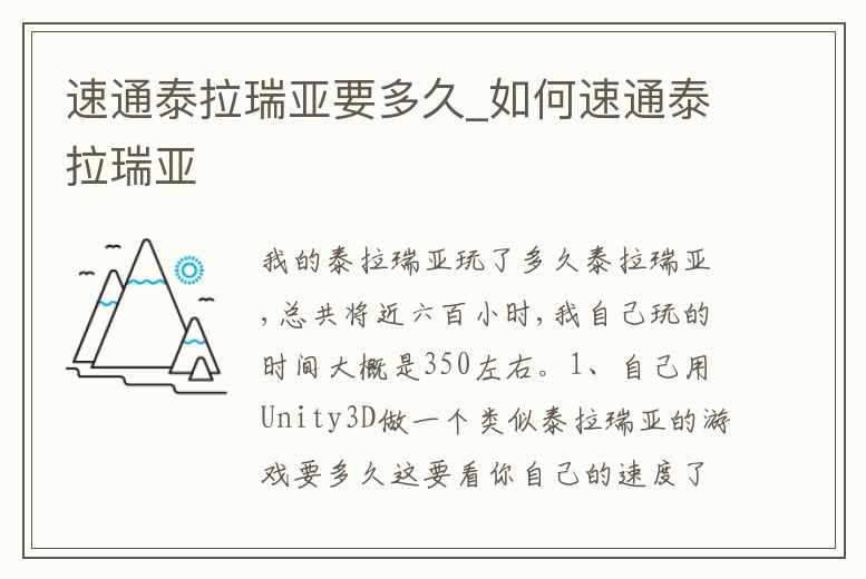 速通泰拉瑞亞要多久_如何速通泰拉瑞亞