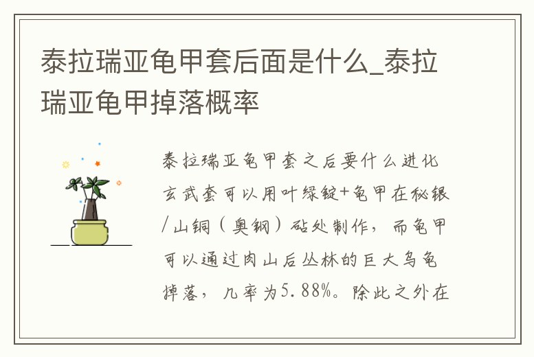 泰拉瑞亞龜甲套后面是什么_泰拉瑞亞龜甲掉落概率