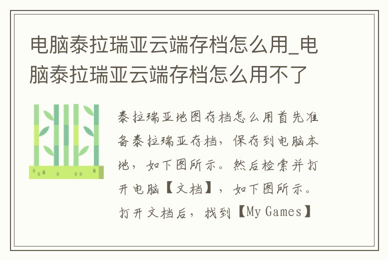 電腦泰拉瑞亞云端存檔怎么用_電腦泰拉瑞亞云端存檔怎么用不了