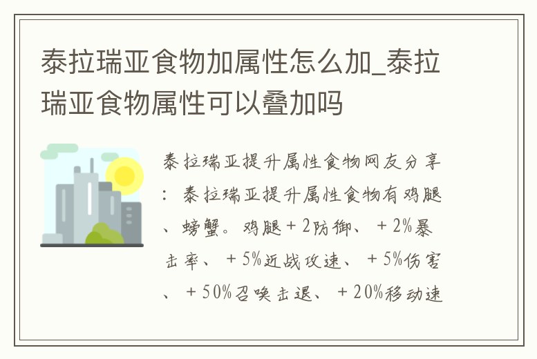 泰拉瑞亞食物加屬性怎么加_泰拉瑞亞食物屬性可以疊加嗎