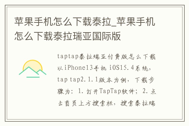 - 蘋(píng)果手機(jī)怎么下載泰拉_蘋(píng)果手機(jī)怎么下載泰拉瑞亞國(guó)際版